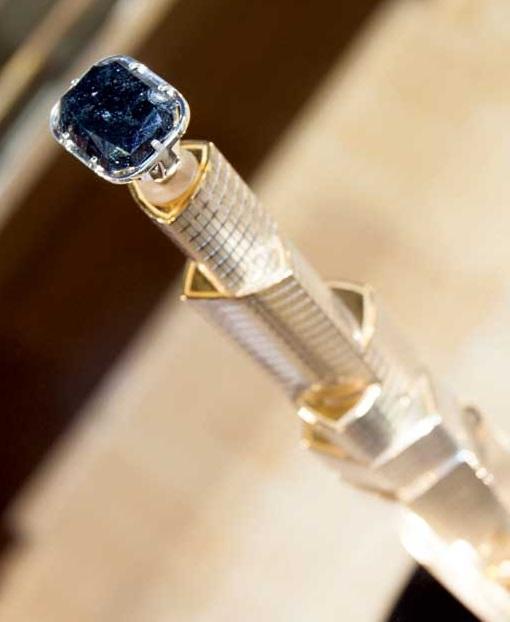 وقالت الشركة ان المجسم مصنوع من الفولاذ الخالص وتتربع على قمته ماسه عيار 99 قيراط، ورصعت قاعدته بمجموعة من الاحجار الكريمة.