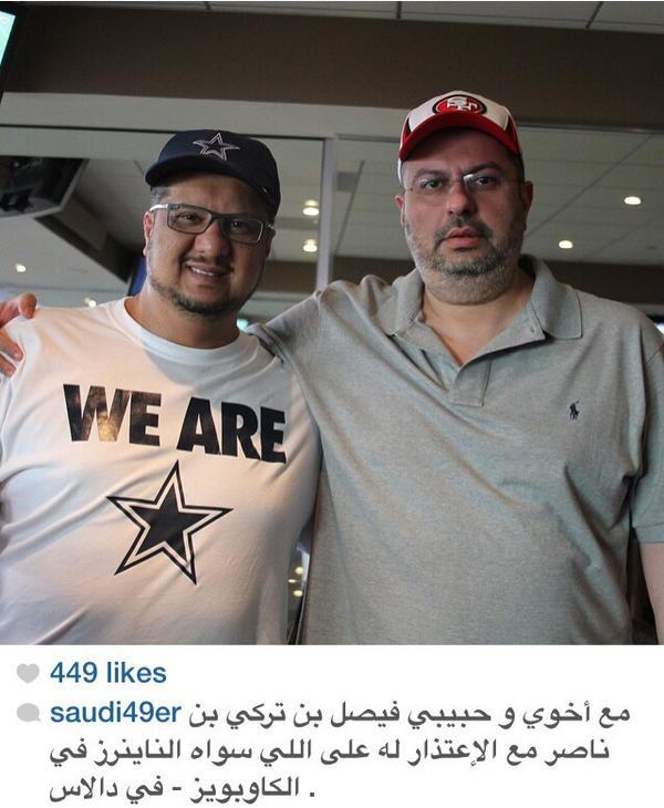 يذكر أن الأميرين يتمتعان بعلاقة صداقة قوية، وتعليق الأمير بن مساعد يرتبط بالتنافس الكبير بين فريقي سان فرانسيسكو فورتي ناينرز ودالاس كاوبويز في دوري كرة القدم الأمريكية.