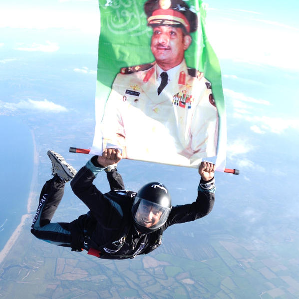 نفذ المظلي محمد الشهري، قفزة مظلية بصورة قائد وحدات المظلات بالسعودية، اللواء ركن الأمير فهد بن تركي، من ارتفاع 17 ألف قدم في مدينة برشلونة الإسبانية، عرفاناً لما يقدمه من تطوير لوحدات المظلات بالمملكة.