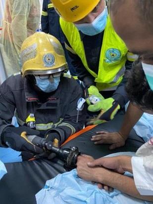 وأظهرت صورٌ رجال الدفاع المدني خلال محاولتهم الناجحة، لإخراج الإصبع دون أن تصاب بسوء، وذلك داخل إحدى المنشآت الطبية، بعد أن تم قص أنبوب البنزين بعيدا عن السيارة.