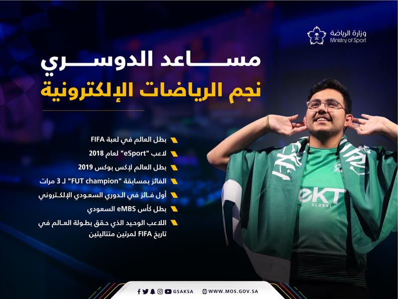 ويعد "مساعد الدوسري" بطل العالم في لعبة "فيفا"، ولاعب eSport لعام 2018، وبطل العالم لجهاز إكس بوكس في 2019، وفاز بمسابقة FUT Champion 3 مرات، وأول فائز في الدوري السعودي الإلكتروني، وبطل كأس eMBS السعودي، واللاعب الوحيد الذي حقق بطولة العالم في تاريخ "فيفا" لمرتين متتاليتين.
