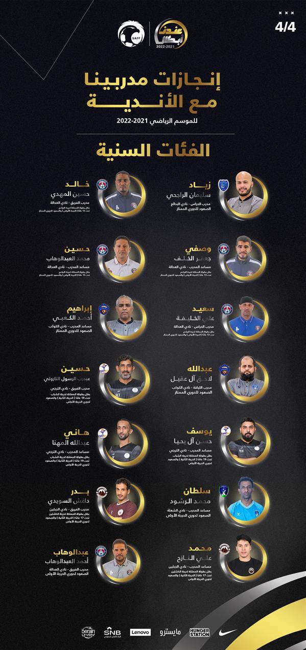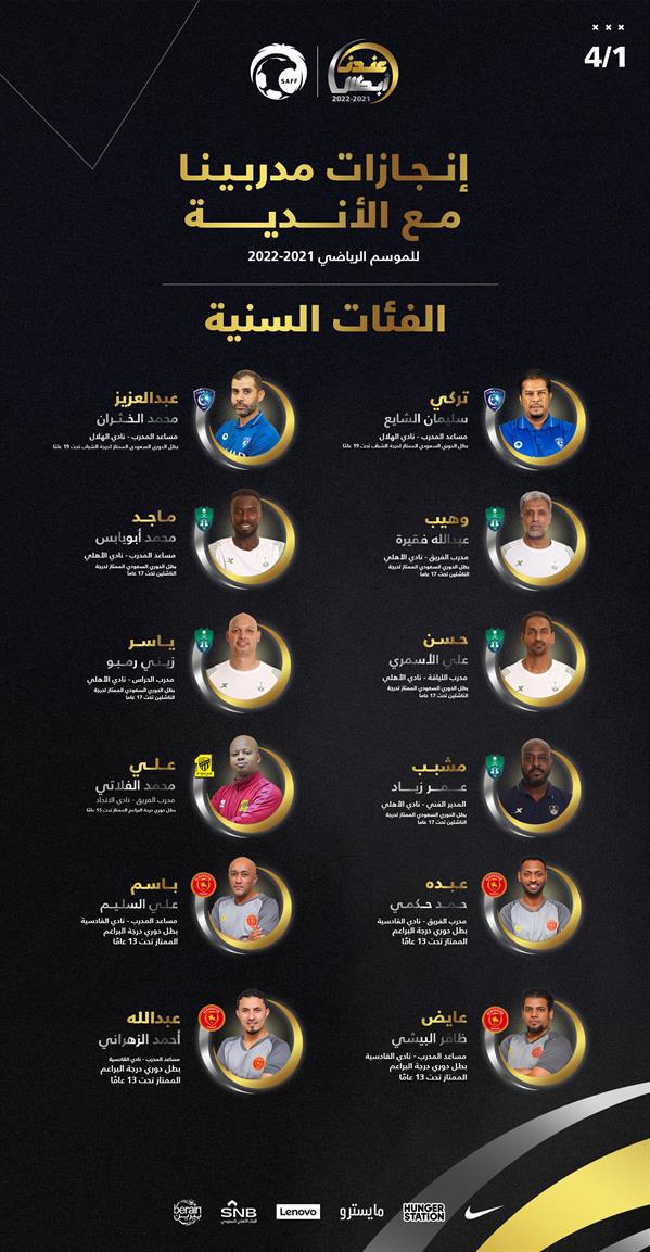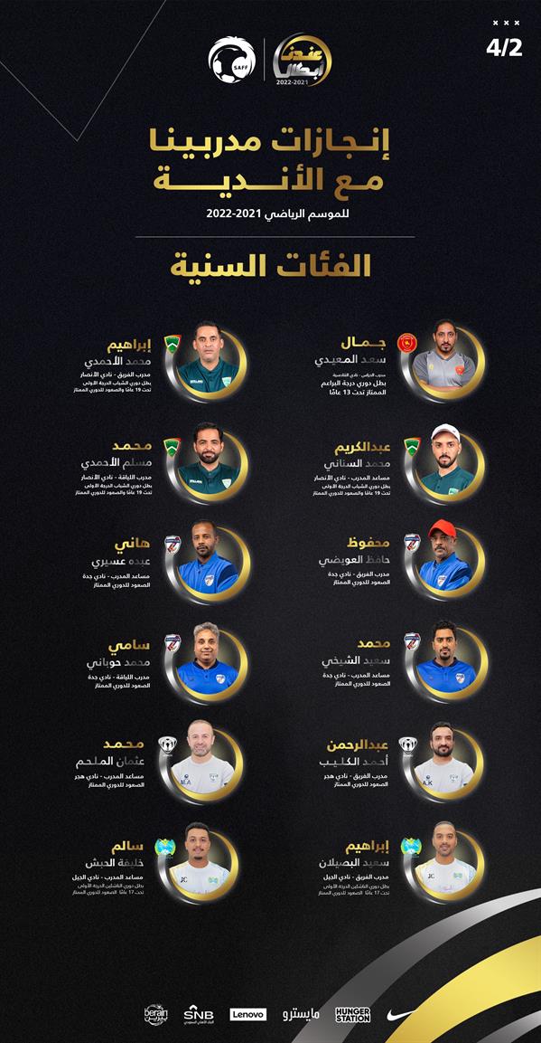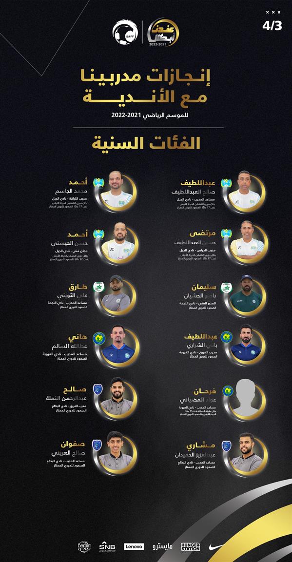 وإليكم قائمة أبطال الأندية في الفئات السنية في موسم 2021/2022: