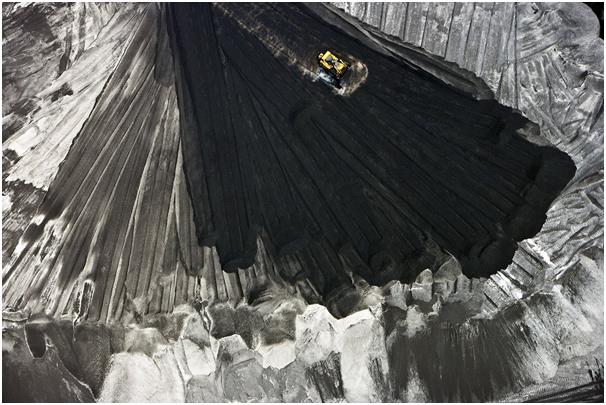 صفوف من أكوام تعدين الفحم البني في "Otzenrath" في ألمانيا، وقد قضى "فير" سنوات يتتبع إنتاج النفط والألومنيوم وغيرهما من المواد.