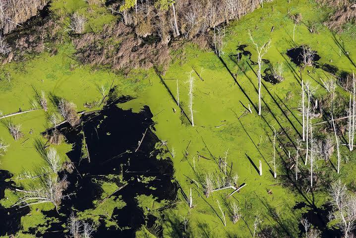 مستنقعات تنمو بها طحالب بصورة غزيرة بجوار مصنع في مزرعة في مدينة وارسو بولاية نورث كارولينا.