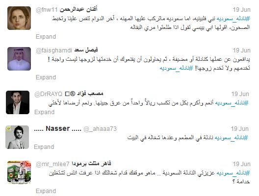 #نادله_سعوديه هاشتاق للتعليق على عمل المرأة السعودية كجرسونة بأقسام العوائل في المطاعم.
