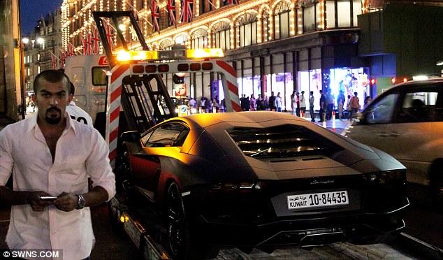 الصورة الاولى ادناه لأحد المشاركين بالفيلم الكويتي "عبدالعزيز الراشد" الذي قضى الصيف في لندن بسارته اللامبورجيني البالغة قيمتها 250 ألف جنيه استرليني .. تم احتجاز السيارة من قبل الشرطة بسبب عدم وجود تأمين عليها