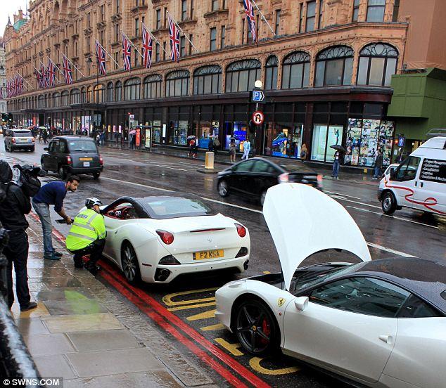الشرطة تحتجز السيارتين الفارهتين نظرا لوقوفهما في مكان خاطئ خارج متاجر "هارودز" الشهيرة