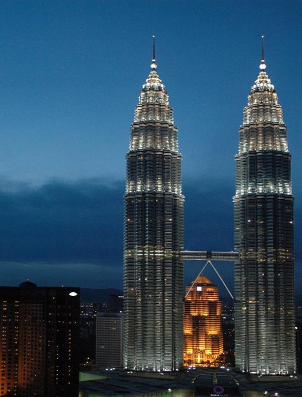 برجا شركة "بتروناس" الشركة الماليزية العملاقة للنفط ، ويربط بينهما جسر معلق على ارتفاع 550 قدم .