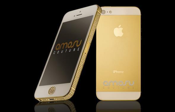 3- Gold Swarovski iPhone 5 : هاتف الايفون 5 المرصع بـ الذهب عيار 24 قيراط ومرصع من جوانبه بـ 600 حبة كرستال من سوارفسكي من شركة Amosu Couture ،وياتي الجهاز مع جراب من الجلد. في حين يبلغ سعر الجهاز حوالي 4.500 دولار .