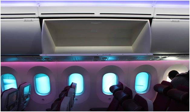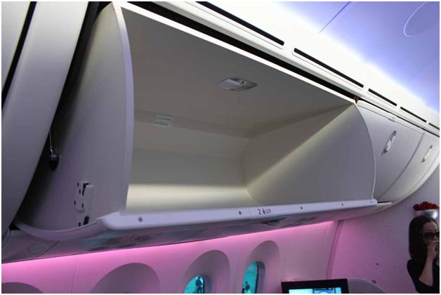 كما يمكن لكل مسافر الصعود على متن "بوينج دريملاينر" مع حقيبة يد ضخمة بفضل المساحة التخزينية الكبيرة المخصصة لأغراض كل راكب أعلى مقعده.