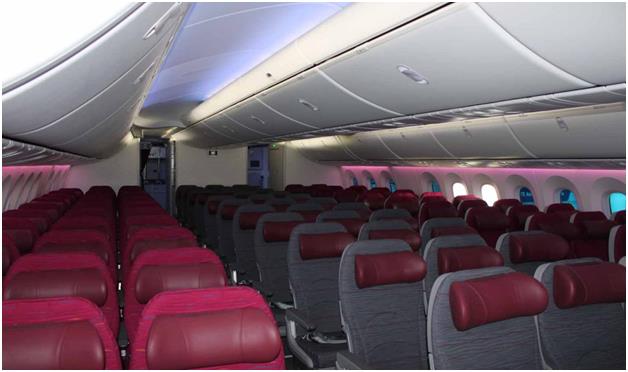 وتضم الطائرة "بوينج دريملاينر 787" درجتين فقط للرحلات: درجة رجال الأعمال والدرجة الإقتصادية.