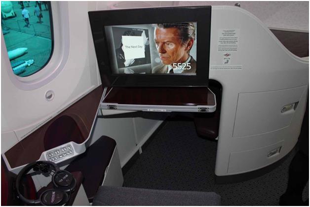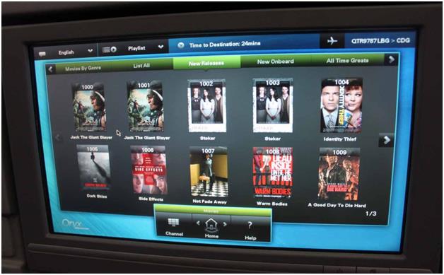 ويمكن لكل مسافر على متن درجة رجال الأعمال "بوينج دريملاينر" متابعة أفلام وبرامج تليفزيونية من خلال شاشته اللمسية الخاصة التي تضم باقة متنوعة تشمل نحو 1000 فيلم وبرنامج تليفزيوني شهير، علماً أن الشاشات مزودة بجهاز للتحكم عن بُعد.