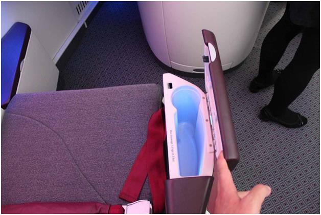 ويضم كل مقعد – على درجة رجال الأعمال - مساحة تخزينية لمتعلقات المسافر.
