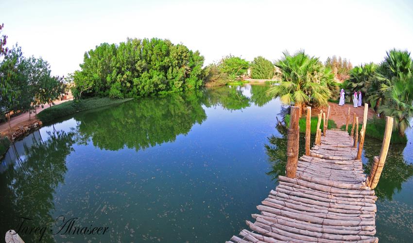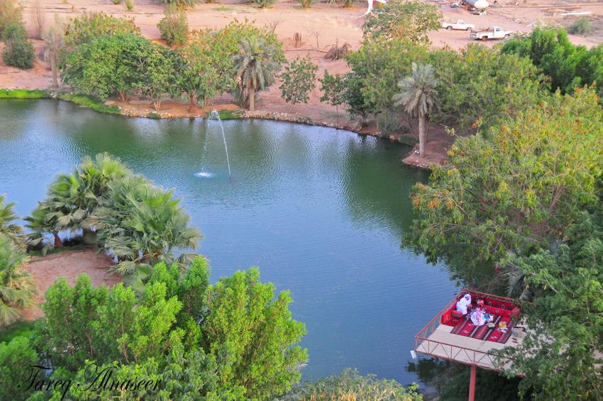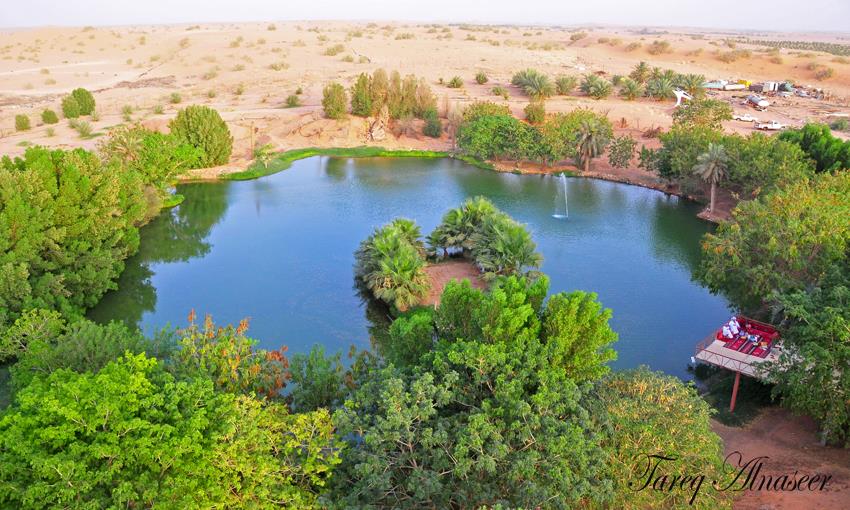 تمكن مواطن من محافظة البدائع بمنطقة القصيم من استغلال مزرعته من خلال إنشاء بحيرة وجلسة مطلة عليها وسط الصحراء.