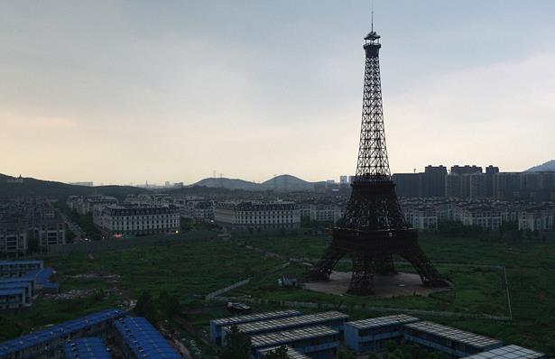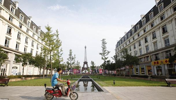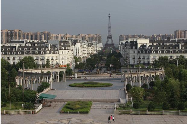 كما تضم المدينة الصينية "الباريسية" نموذجاً مصغراً من برج "إيفل"، بالإضافة إلى العديد من نماذج البنايات التي تحاكي المعمار الأوروبي في باريس.
