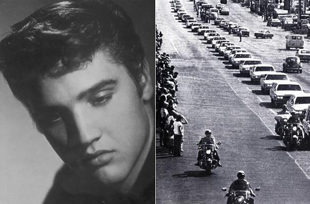 مغني الـ "روك آند رول" الأمريكي "الفيس بريسلي"، توفي في 16 أغسطس عام 1977، عن عمرٍ يناهز 42 عاماً، واحتشد نحو 25 ألف شخص حول منزله لتشييع موكب جنازته.