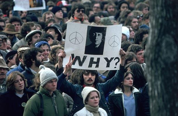 مغني فريق البيتلز الأمريكي "جون لينون"، توفى في 8 ديسمبرعام 1980، عن عمرٍ يناهز 40 عاماً، بعد أن أُطلق عليه الرصاص بواسطة شخص مختل عقلياً، واحتشد 100 ألف شخص لتشييع جنازة "لينون" فى مدينة نيويورك ، وقام 300 شرطي بتأمين الجنازة .