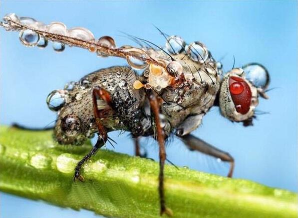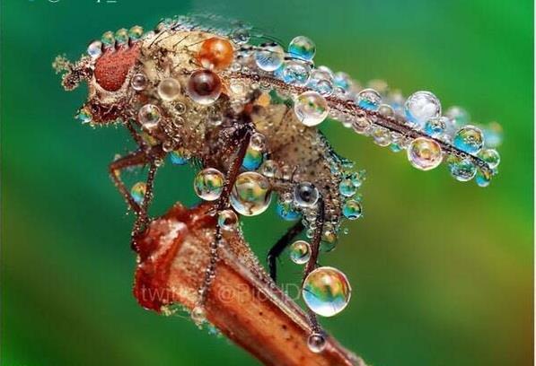 الحشرة المغطاة بالندى وقت الأمطار وكأنها مرصعة بالألماس