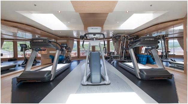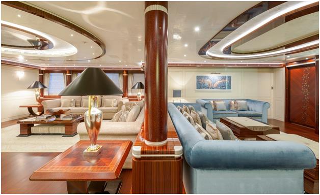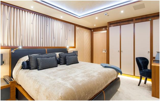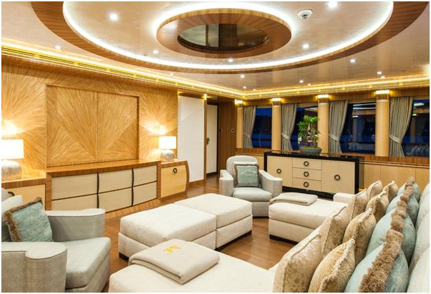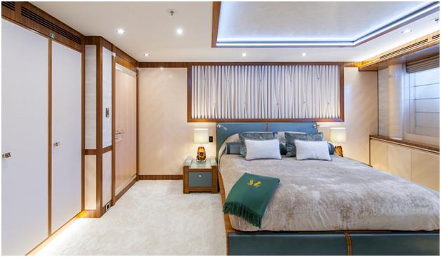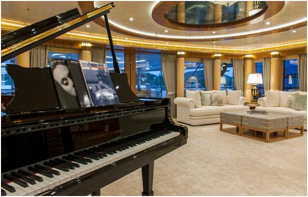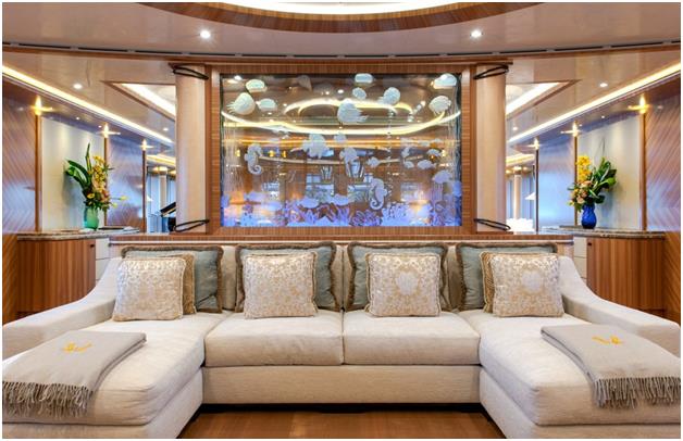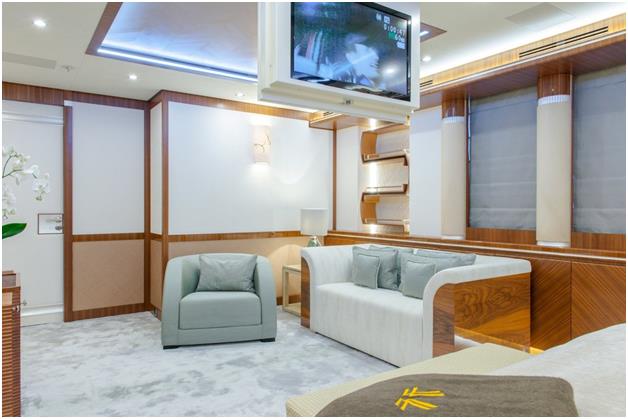 واليخت مزود بقاعة سينما بشاشة ضخمة، فضلاً عن وجود شاشة صغيرة في كل غرفة.