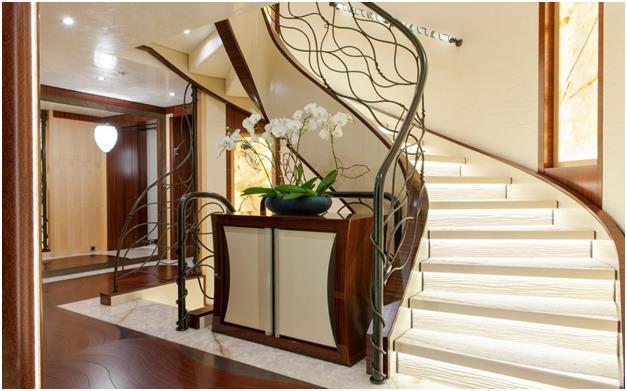 وتم إستخدام ما يزيد عن 13 نوعاً مختلفاً من الأحجار في التصاميم الداخلية لليخت “Quatroelle”.