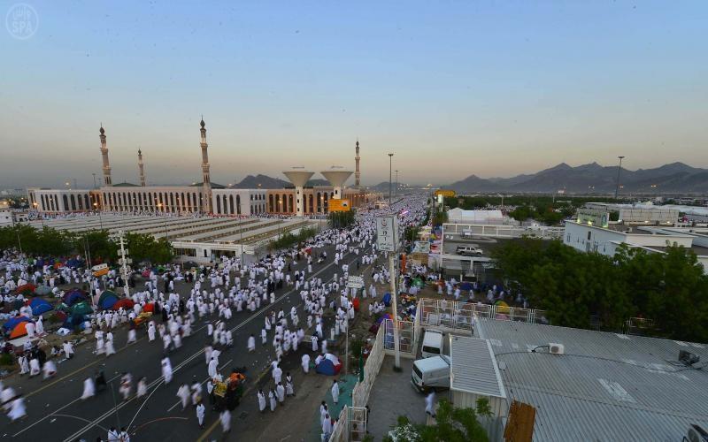 حيث احتشد المكان بالحجيج رافعين أصواتهم بالتلبية والابتهال لله، تأسياً بالرسول الكريم صلى الله عليه وسلم، وسيتسمعون لخطبة عرفات، ثم ينزلون عند المغيب إلى مزدلفة للمبيت فيها، استعدادا للنفرة إلى منى لرمي الجمرة الكبرى، ومن ثم إكمال بقية شعائر