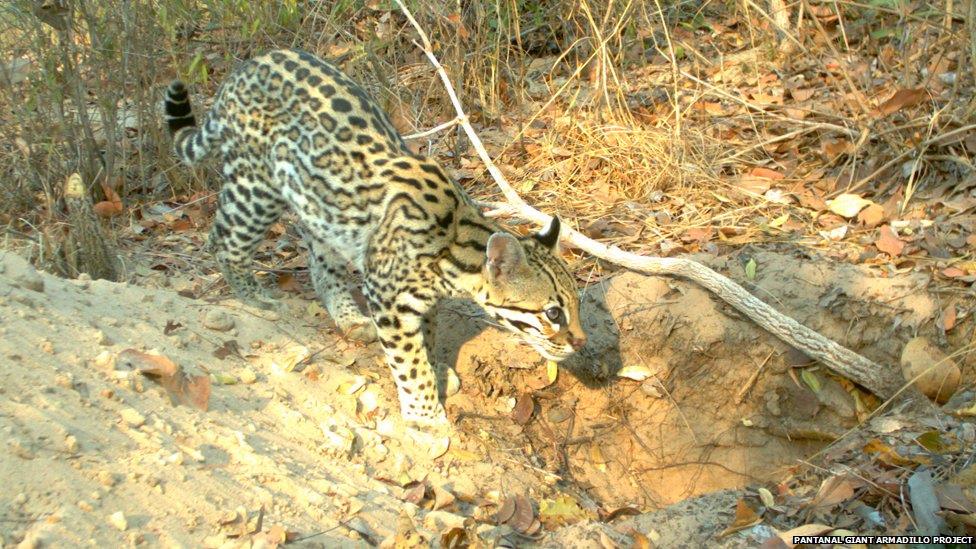 واستخدم الباحثون كاميرات متحركة وسجلوا نشاط مختلف أنواع الحيوانات على مدار الساعة، وهي تستخدم حجور حيوان المدرع لأغراض متعددة. ومن بينها القط البري الذي يصطاد السحالي وفرائس أخرى عند مدخل الجحر.