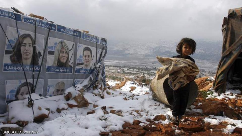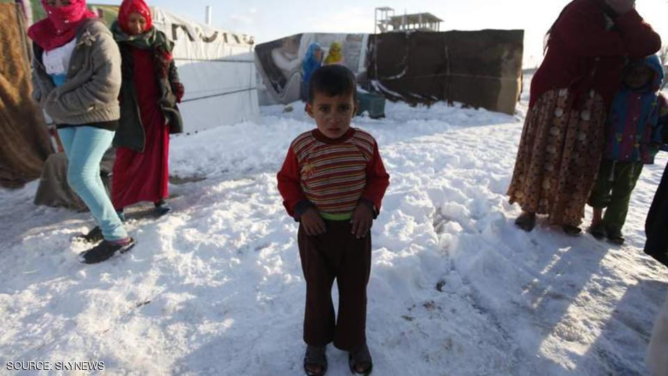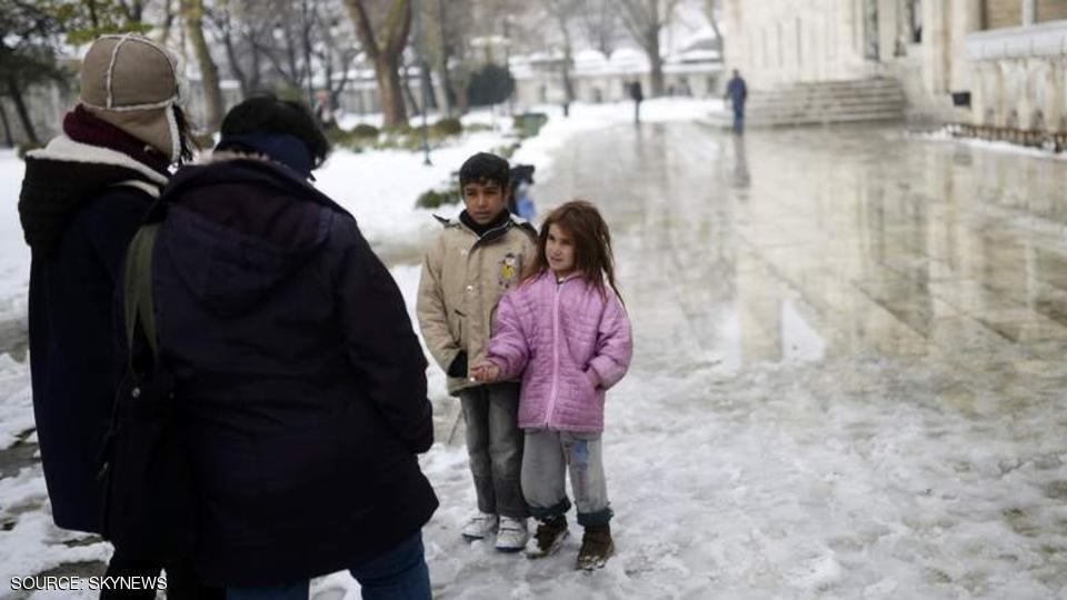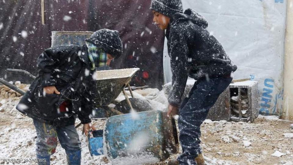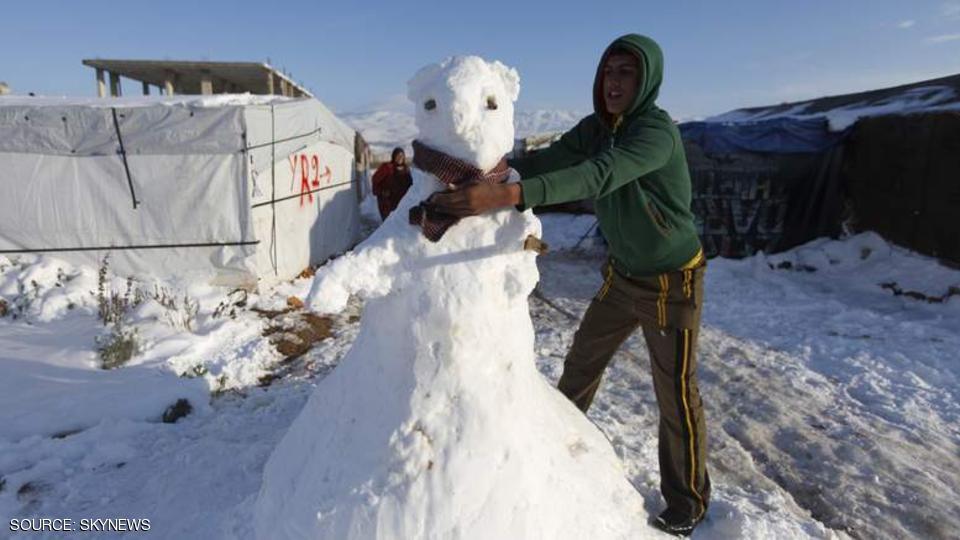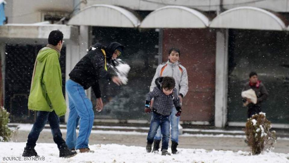 اللعب بالثلج أحد أوجه الهروب من المأساة بالنسبة للأطفال اللاجئين