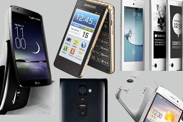 6- LG G Flex : هاتف ذكي من شركة ال جي بشاشة منحنية الأطراف بشكل عمودي من الاعلى الى الاسفل بعكس الجالاكسي راوند من سامسونج المنحني من اليمين الى اليسار، ما يميز الهاتف هي امكانية اصلاح نفسه بنفسه حيث يملك غطاء خلفي يمكنه أصلاح نفسه بعد عدة دقائق من ظهور الخدش وازرار التحكم من الجهة الخلفية من بحث يمكن التحكم بها من خلال السبابة.