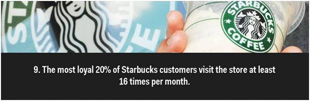 تبلغ نسبة عملاء "ستاربكس" الأوفياء 20% من إجمالي عدد عملائها، حيث يحرصون على زيارة المقهى العالمي 16 مرة شهرياً.