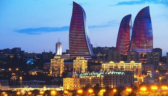 "فليم تاورز" أو الأبراج المشتعلة في دولة "أذربيجان"، وتم تغطية تلك الأبراج الثلاثة بشاشات "LED" لتجعلها تبدو كأنها مصابيح عملاقة من اللهب ليلاً، ويهدف التصميم لنوع من الدعاية السياحية للدولة الغنية بالغاز الطبيعي، ويعد البرج السكني هو الأطول بين الأبراج الثلاثة بواقع 39 طابقاً.