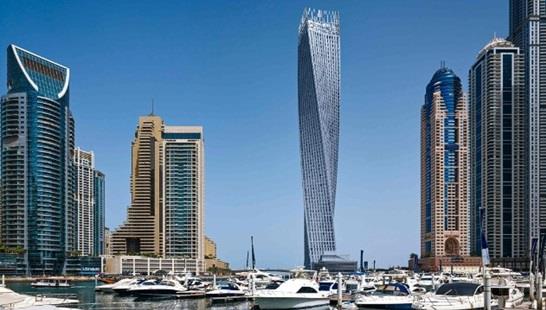 برج "كيان"، والمعروف باسم برج "إنفينيتي" في دبي، ويضم 80 طابقا، بواقع 306 أمتار، وهو مُصمم بشكل ملتو بهدف التصدي لقوة الرياح.