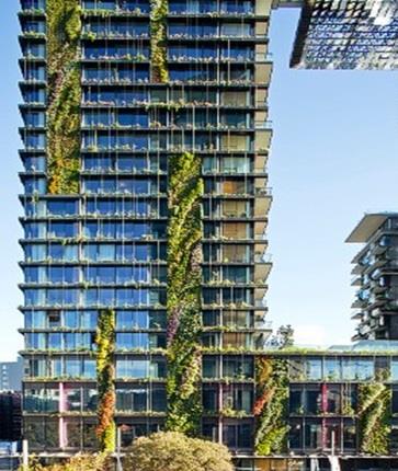 "وان سنترال بارك ايست"، في مدينة "سيدني" الاسترالية، ويضم 31 طابقاً، ويتميز بحدائقه العمودية في كل طابق، ويضم مطاعم، ومتاجر للتسوق.