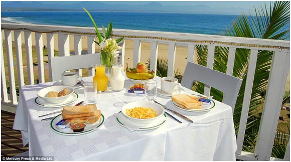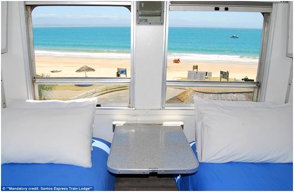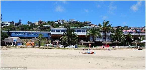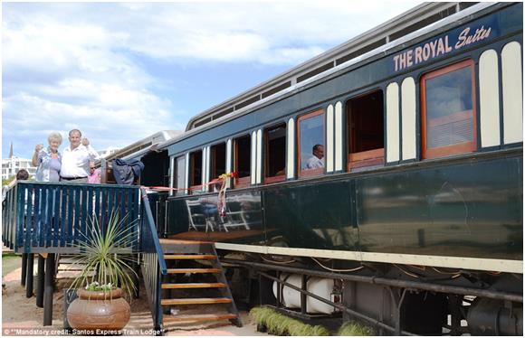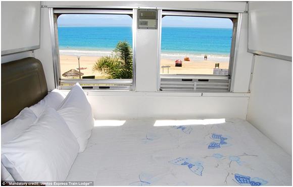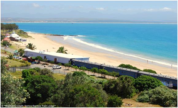 ويطل الفندق، الذي أطلق عليه النزلاء اسم "القطار"، على شاطىء "سانتوس اكسبريس" بخليج "موسيل" الواقع بين مدينة "كيب تاون" وميناء "اليزابيث".