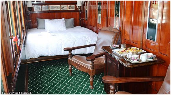 تحولت عربات قطار مهجور إلى فندق فاخر يطل على مجموعة من المشاهد الطبيعية الخلابة في جنوب أفريقيا، وذلك على النحو التالي: