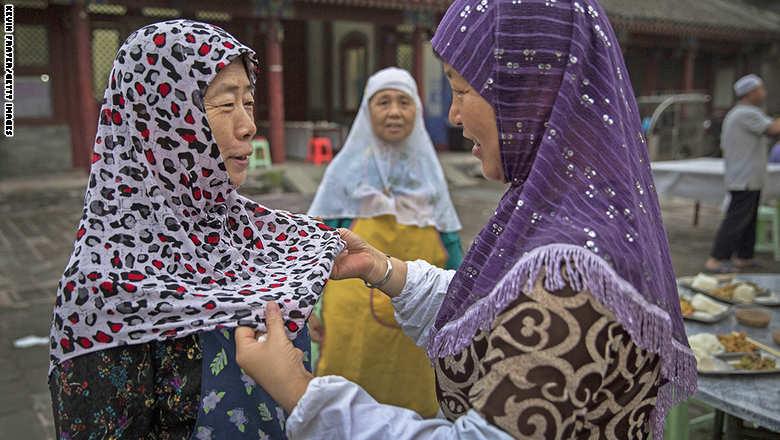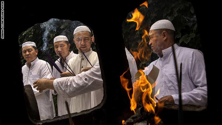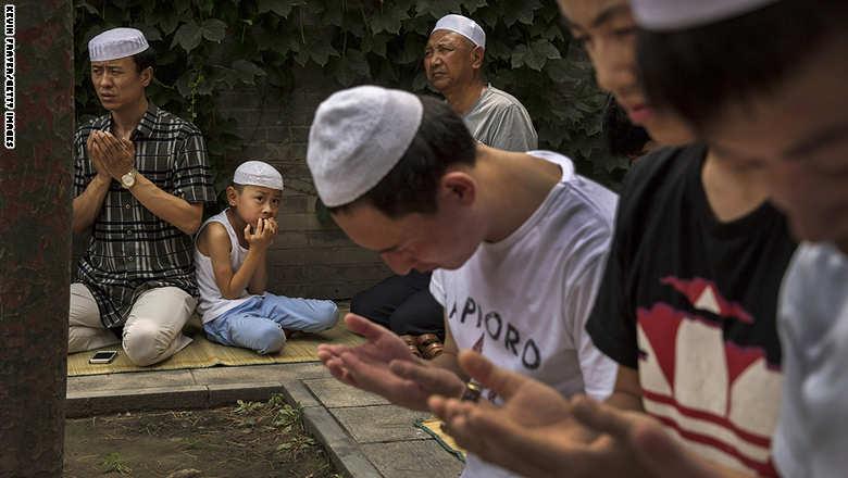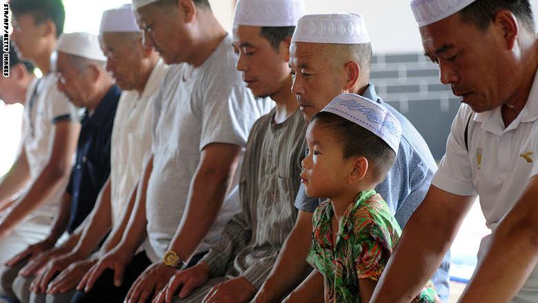 رجال وأطفال صينيين يصلون في مسجد تانتشينغ قبل رمضان.