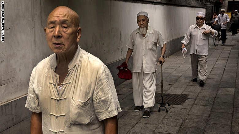 صينيون يغادرون بعد أداء صلاة الجمعة في مسجد نيوجيه ببكين.