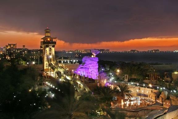 وتقع حديقة "وايلد وادي" أمام فندق "برج العرب"، وتقدم نحو 30 رحلة، وقد استوحي تصميمها من قصة "جحا" الشهيرة، بينما تقع حديقة "أكوافنتشر" في فندق "أتلانتس النخلة"، وتحتوي على منزلقات مائية، وبحيرات مليئة بأسماك القرش، ومغامرات النهر السريع، ومنطقة خاصة بألعاب الأطفال.