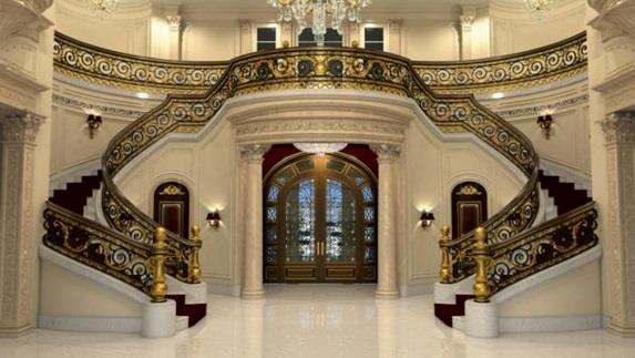 ويضم البهو سلمًا بمقابض نحاسية ضخمة، مطلية بماء الذهب، والتي كلفت 2 مليون دولار.