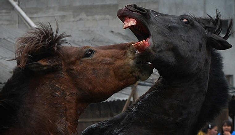 عادة، ما تتقاتل الفحول في مسابقات فريدة من نوعها لصراع الخيول البرية في الصين، وذلك بمناسبة العام الصيني الجديد.