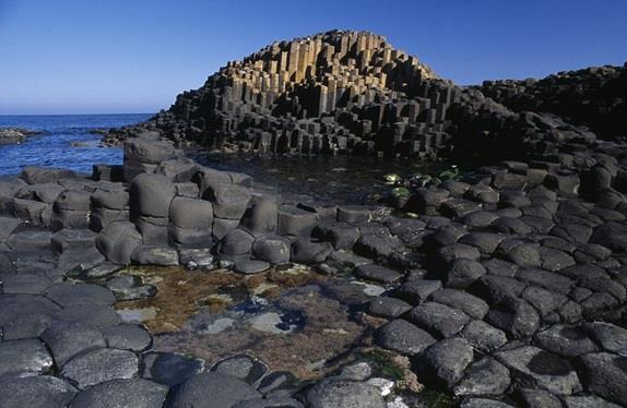 "جسر العمالقة" في مقاطعة "أنتريم" على الساحل الشمالي من "أيرلندا"، ويتشكل من 40 ألفاً من الأعمدة البازلتية المتشابكة، وأعُلنت تلك المنطقة كأول موقع للتراث العالمي من قِبل اليونسكو في أيرلندا عام 1986.