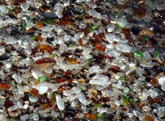 "شاطئ الزجاج"، ويقع ضمن حديقة "ماكريكر"بارك العامة في "كاليفورنيا"، وتأتي غرابة هذا الشاطئ من أنه تكوٌن من دفن النفايات في الرمال بعد الحرب العالمية الثانية، إلى أن أوقفت الحكومة ذلك، وبمرور الوقت أدت الأمواج إلى تآكل البقايا الزجاجية للنفايات، وانتشرت على سطح الشاطئ ليصبح مظهراً جذاباً.