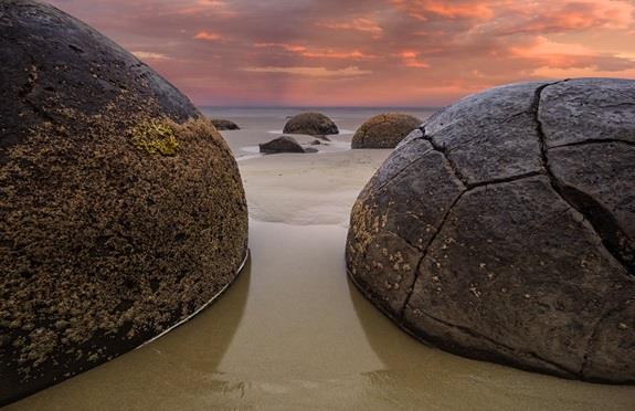 شاطىء "Koekohe" في "نيوزيلندا"، ويضم صخورًا عملاقة، تشكلت من رواسب قاع البحر القديم منذ نحو 60 مليون سنة، وتشبه تلك الصخور العجيبة هيئة السلحفاة.