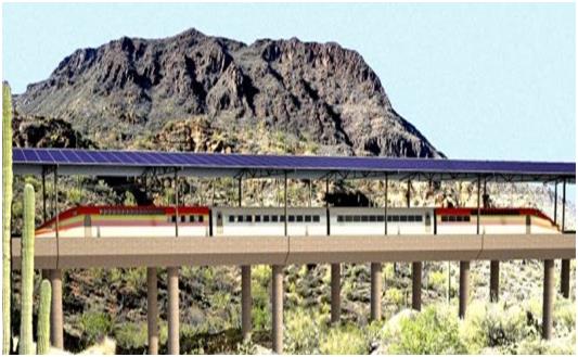 "نظام النقل بالطاقة البديلة"، ويستهدف استخدام الطاقة الشمسية وطاقة الرياح كطاقة نظيفة، يمكنها توليد سرعة للقطار تصل إلى 354 كيلومترًا في الساعة، ومن المقرر إنشاء هذا المشروع في "أريزونا" لكنه يواجه بعض الصعوبات.