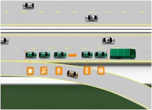 نظام "اتبع القائد"، ويستهدف هذا النظام التصدي لمشكلة فوضى السير في الطرقات العامة، بسبب خروج السيارات عن مساراتها، حيث يعتمد هذا النظام على سيارة تسير في الأمام، وتتصل بها عدد من السيارات بدون أسلاك، من خلال تكنولوجيا لاسلكية، وبذلك لا تحيد السيارات عن الطريق تبعًا لرغبة سائقها، وإنما تكون أكثر نظامًا.