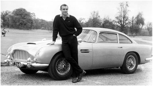 سيارة "أستون مارتن DB5"، وشاركت في فيلمي "إصبع الذهب" عام 1964، و"Thunderball" عام 1965، وباعتها شركة "RM Auctions" في شهر أكتوبر من عام 2010 ، بنحو 3 ملايين دولار.