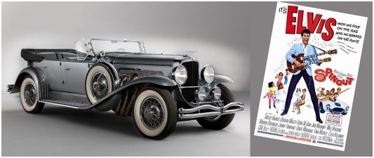 سيارة " دوسنبرغ j" ، وشاركت في فيلم "Spinout" عام 1966، وباعتها شركة " RM Auctions" في شهر يناير لعام 2011، بنحو مليون دولار، في ولاية أريزونا بالولايات المتحدة الأمريكية.