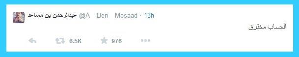 تعرض حساب الأمير عبدالرحمن بن مساعد رئيس مجلس إدارة نادي الهلال على موقع التواصل الاجتماعي "تويتر" إلى الاختراق .