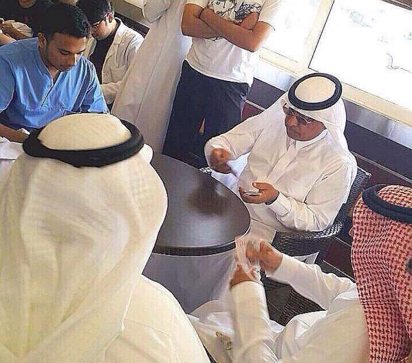 من جانبه، كشف مصدر مسؤول بالجامعة وفقا لصحيفة "عكاظ" قصة الصورة، لافتا إلى أنه أثناء جولة مدير الجامعة أمس في كلية الطب، دخل إلى البوفيه الجديد الذي تم إنشاؤه مؤخـرا للطلاب، فوجد على إحدى الطاولات مجموعة من طلاب الكلية وهم يلعبون "البلوت"، فبدا عليهم الارتباك حينما شاهدوا مديـر الجامعة، فقال لهم: "عادي خلوكم" وجلس معهم وشاركهم اللعب وتناول إفطاره معهم.