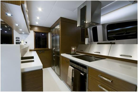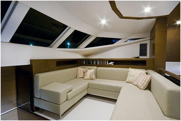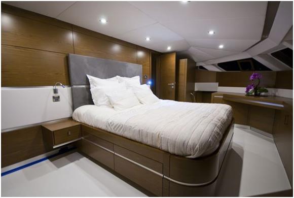 واليخت مجهز بالكامل بتصميمات داخلية حديثة، ويمكن أن يستضيف 8 أشخاص.