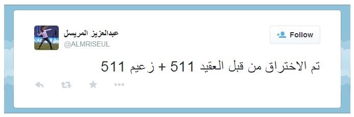اخترق هاكر حساب الإعلامي الرياضي عبدالعزيز المريسل، تاركاً تغريدة على الحساب تقول إن سبب اختراقه لحساب المريسل هو تطاوله على نادي الهلال، وواصفا الاختراق بأنه "لعيون فايز، ولعيون الهلال".